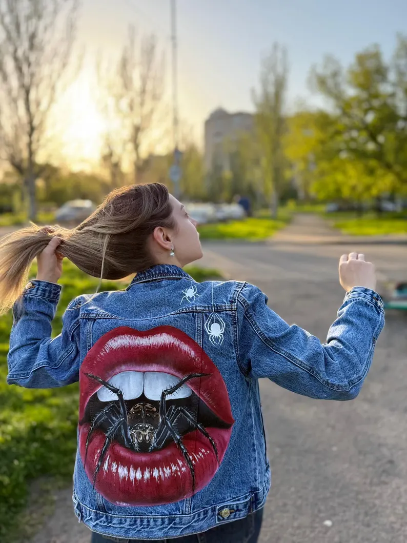 Crafted from premium-quality denim, this jacket not only stands out visually but also offers exceptional comfort and durability. The hand-painted artwork is sealed with protective coating, ensuring it remains vibrant and crack-free even after years of wear. It’s fashion that lasts, both in quality and creativity.